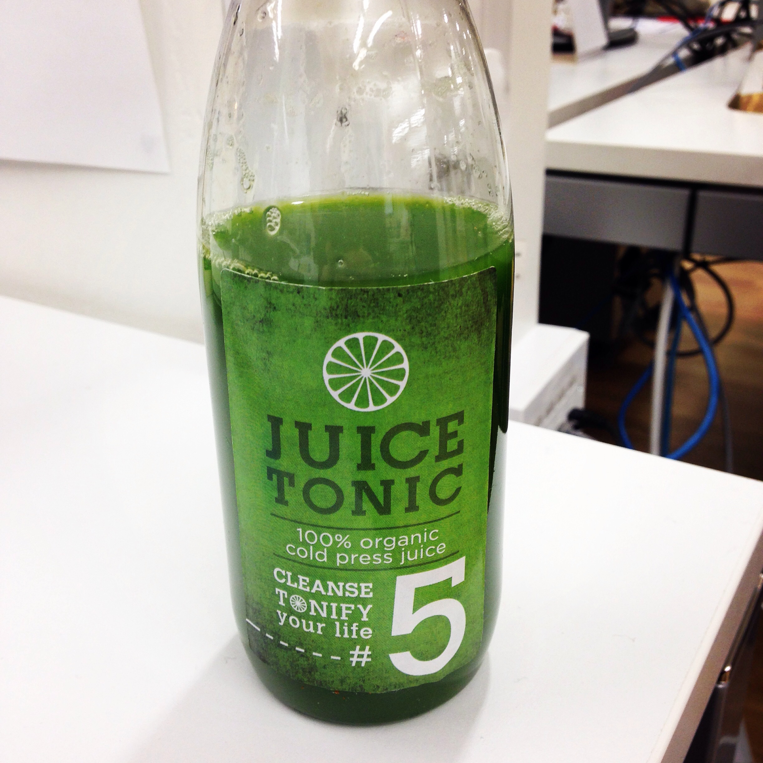 I have always wanted to try a Juice Cleanse- my interest in nutrition and foods to eat and things to do to feel good has increased dramatically over the last 2 years. Due to many many factors. I am just SO intrigued by it, and I soak up nutritional knowledge like there is no tomorrow. I think this might be why my general knowledge is so lacking- my Brain is full of this stuff instead! So, Monday 5th Jan I embarked on Day1. Juice Tonic in soho delivered my 7 juices per day to my office- all numbered in the order I should drink them. I had opted for Number 3- the second most intense cleanse with only a small amount of sugar from apple and carrot๐