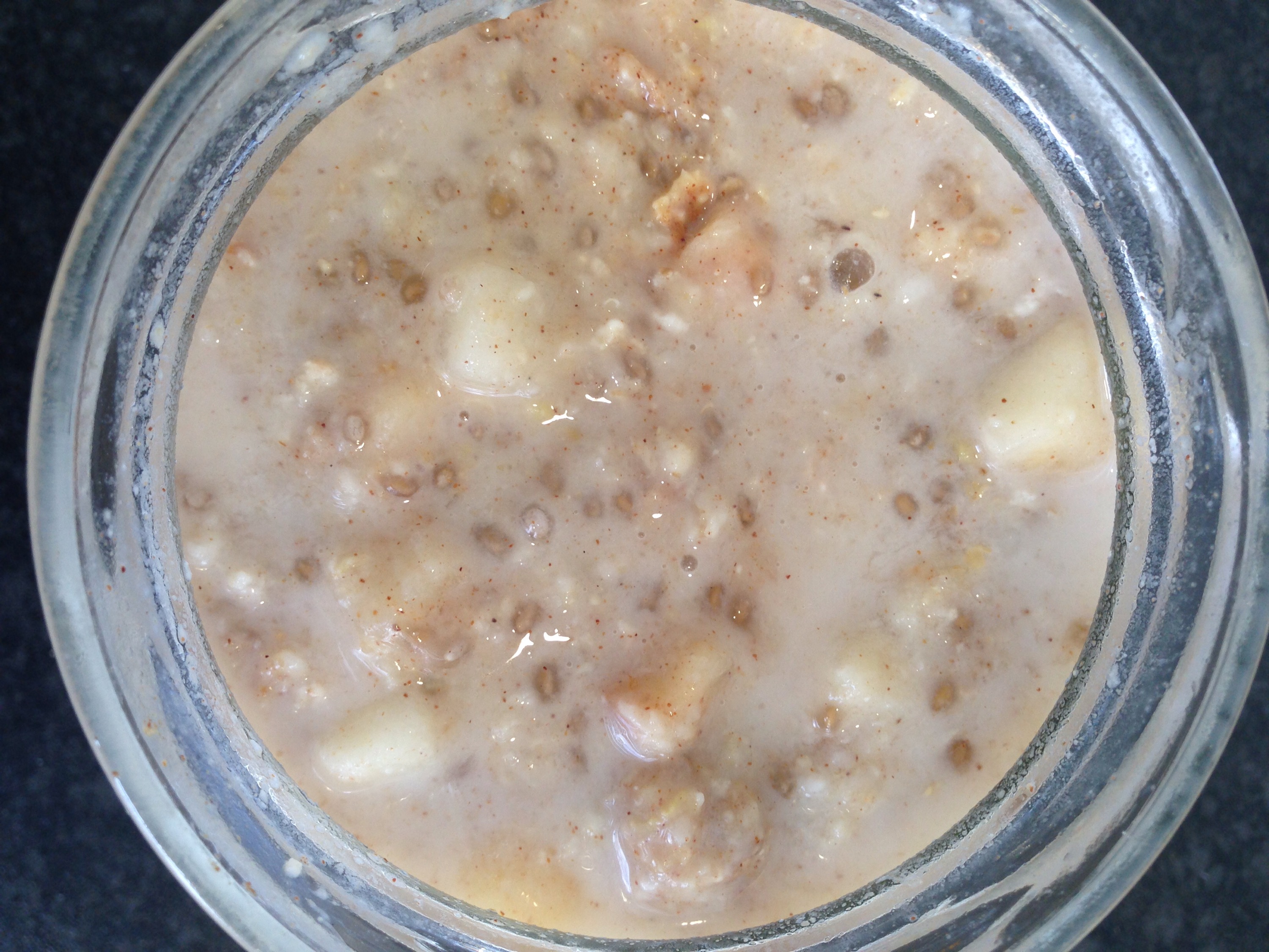 I also tried to think of a slightly more alternative way to get my green tea in! So have soaked some oats, chia seeds, cinnamon, sliced apple and honey overnight in a jar with a green tea bag, hot water and a dash of almond milk. It’s looking good already and will be hopefully lovely and creamy and dreamy tomorrow!