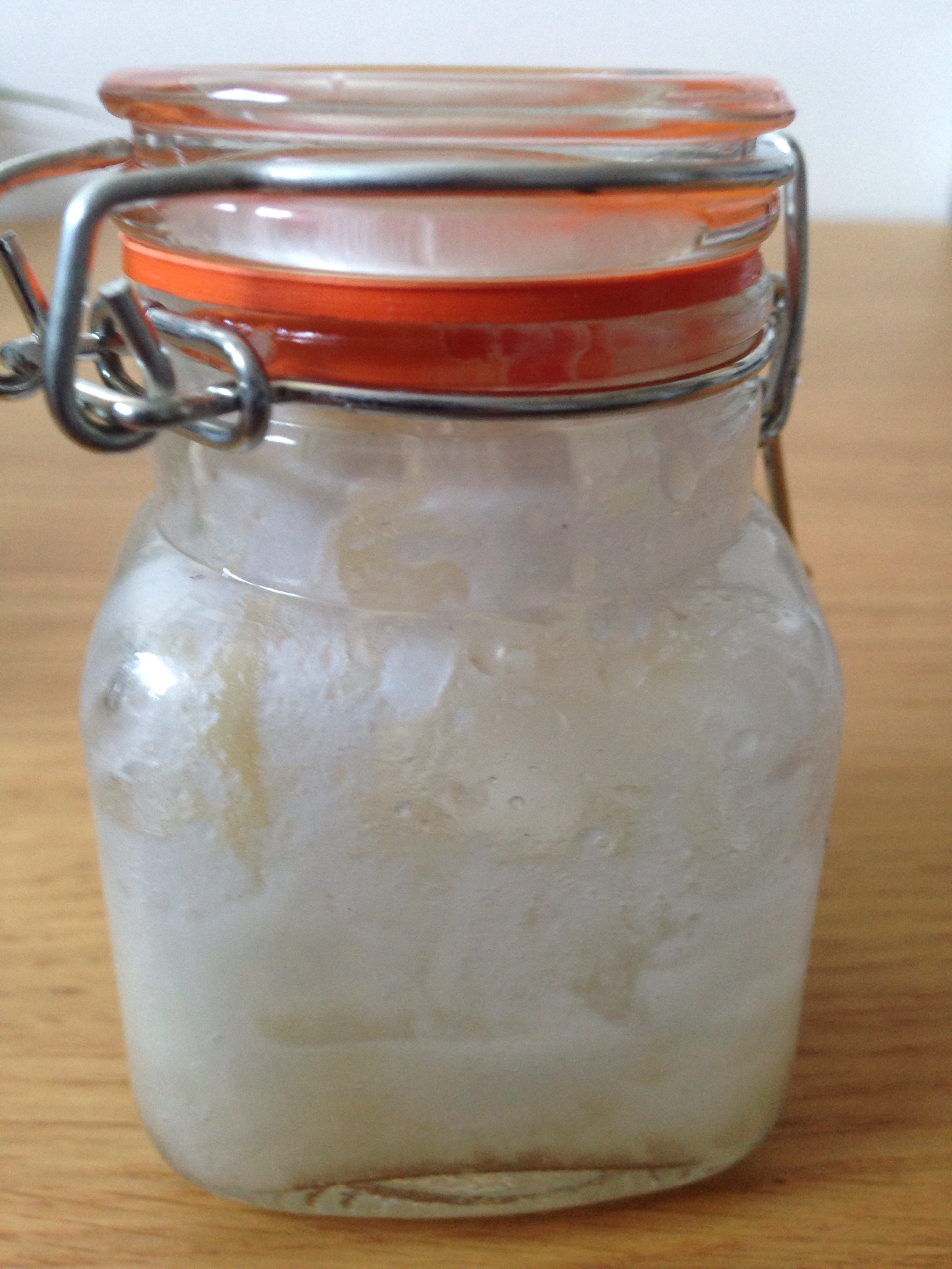 Pop the gel into your blender. Then add 2 tablespooons of coconut oil, melted: